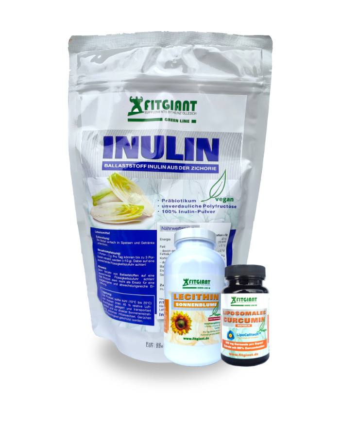 Produkt Paket bestehend aus 500 g Inulin Pulver, Lecithin und Curcuma Kapseln (Liposomales Curcumin)